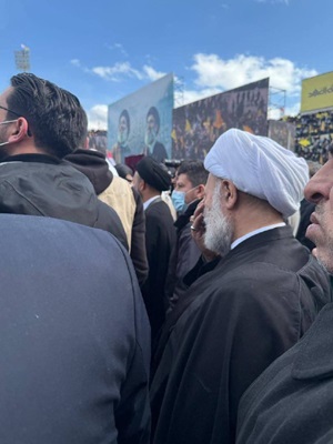 وفيما كان الجمع يستمع في بداية كلمات الامين العام الذي كان ينقل كلمات السيد حسن في خطابه لجمهوره أنتم أشرف الناس حتى رأيت أربعة طائرات اف ١٥ تقبل بارتفاع منخفض جدا وبسرعة متمهلة ثم لتنطلق وتفتح الصوت من وسط الملعب ومثل المرة الأولى عاودت مراقبة الأثر المتخلف على الجمهور ولكن هذا الجمهور الذي سبق له ان رأى من غربان الشر هذه الآلام المضنية ما كان له حينما أحس بها إلا ان هتف انا على العهد يا نصر الله وظل يهتف بهذا الهتاف الى اخر لحظات الوداع…