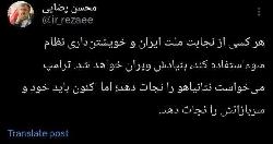 القائد العام الاسبق لحرس الثورة الاسلامية اللواء محسن رضائي: ترامب أراد إنقاذ نتنياهو، لكن عليه الآن إنقاذ نفسه وجنوده