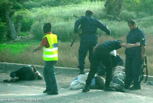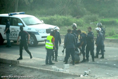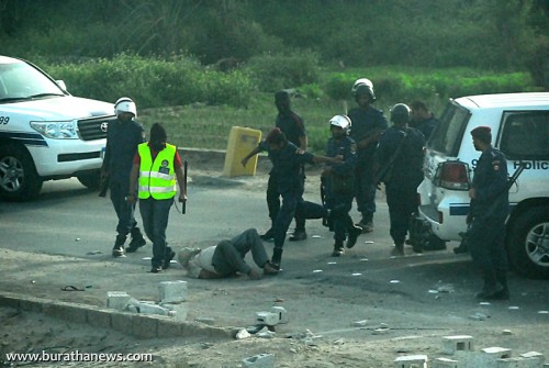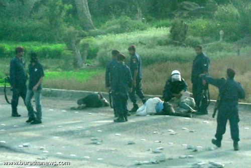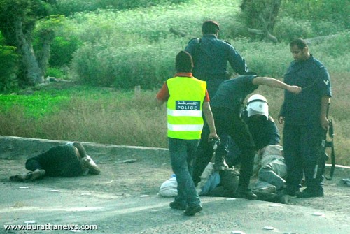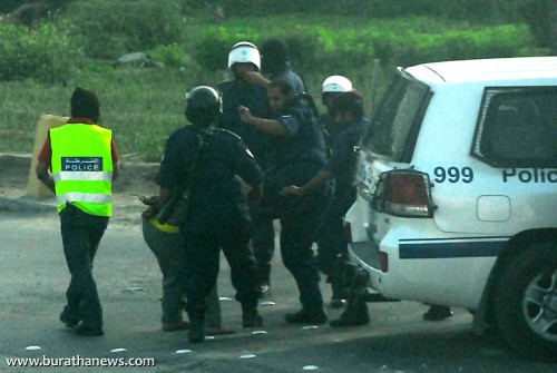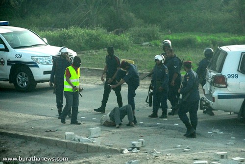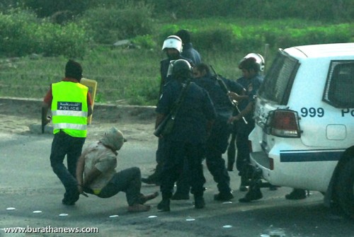 تم اعتقال 3 شبان في قرية كرانة بالقرب من مطبخ عبدالأمير بعد قمع مسيرة رفع المصاحف والتي شارك في عدد كبير من أهالي القرية والقرى المجاورة .. وقد تم الهجوم على المسيرة بواسطة عدد من سياراتهم وتوجهو نحو المشاركين بسرعة عالية .. وقد تم اصطياد 3 شبان وضربهم بوحشيه والدوس فوقهم والضرب بالأخشاب والحديد وتم اعقالهم صور تبين وحشيه هؤلاء