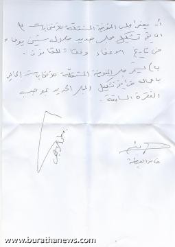 نشر موقع خبر وثيقة موقعة بين كتلة الاحرار وكتلة ائتلاف دولة القانون حول المفوضية العليا للانتخابات وبحسب الوثيقة المنشورة فان الاتفاق يشير الى تشكيل مفوضية عليا للأنتخابات خلال 60يوم على ان تبقى هذه المفوضية مفوضية تصريف اعمال كما تشير الفقرة الى ان الاتفاق تم بين خالد العطية وبهاء الاعرجي
