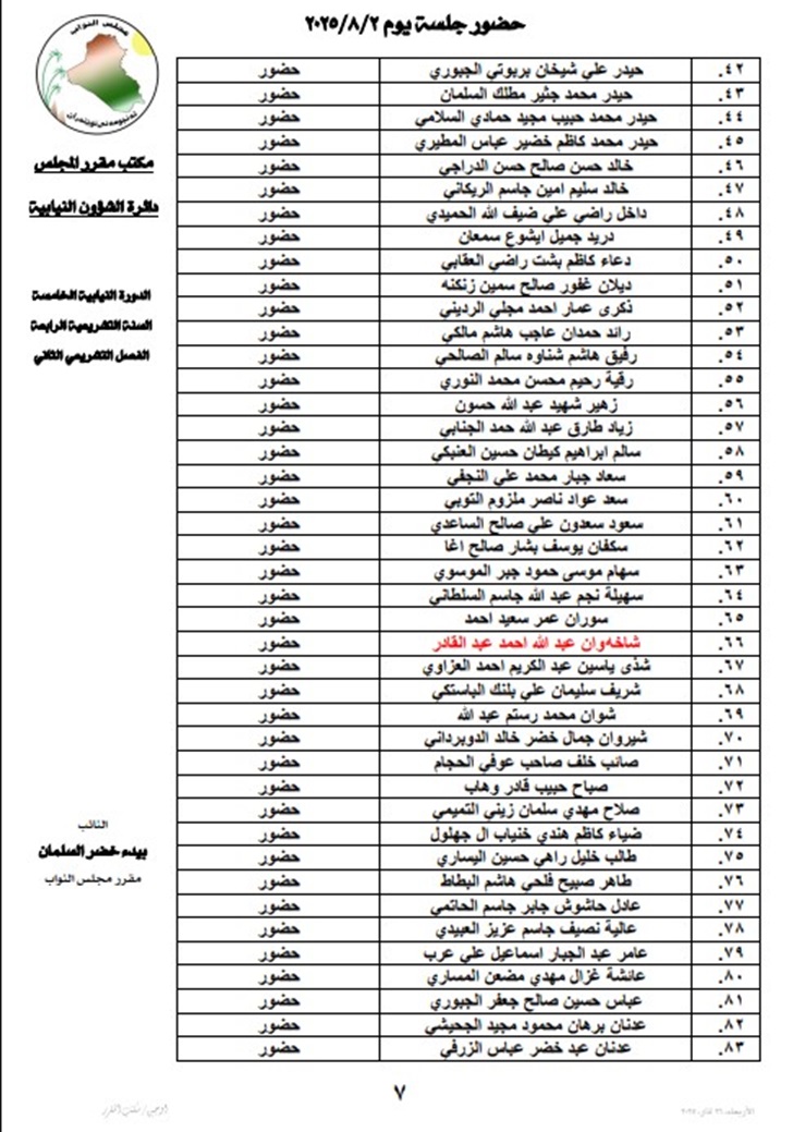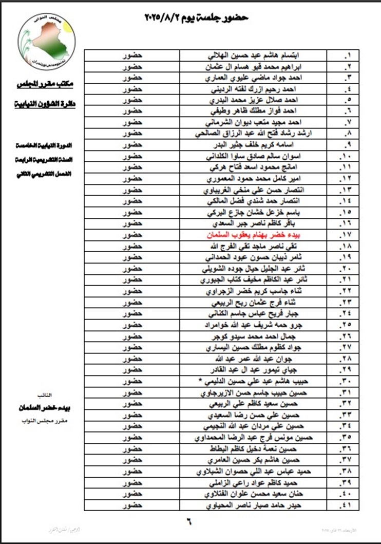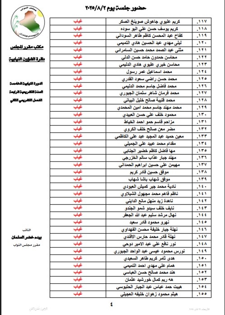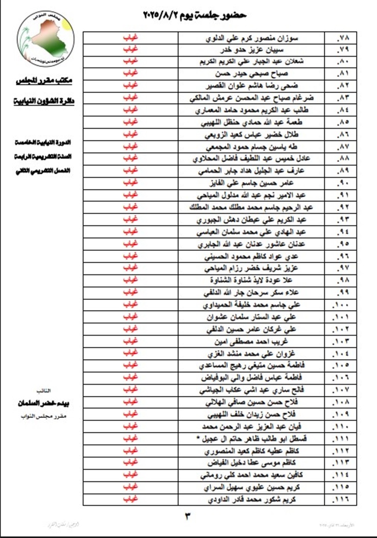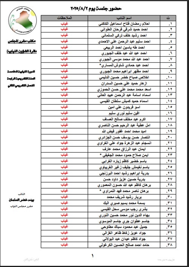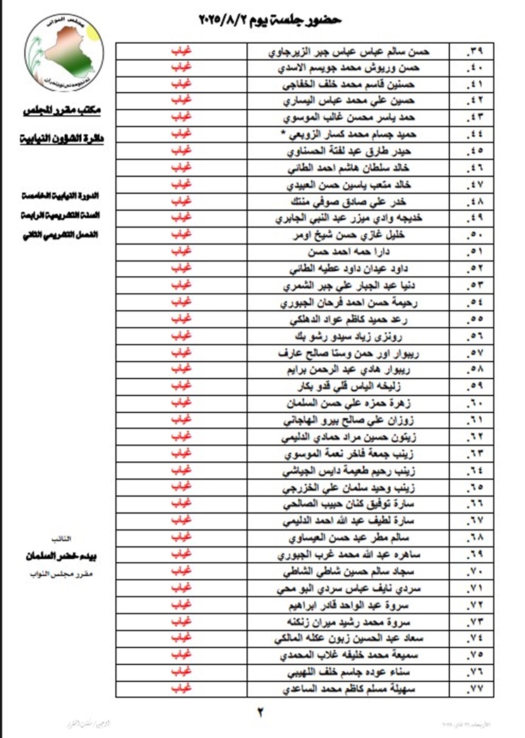 أعلنت رئاسة مجلس النواب، السبت، أسماء أعضاء المجلس المتغيبين عن جلسته اليوم.