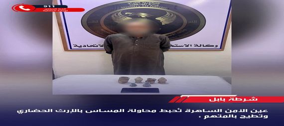 تمكنت مفارز مكافحة الجريمة المنظمة بالاشتراك مع مفارز الاستخبارات من القيام بمداهمه لاحد المنازل في الحلة أسفرت عن إلقاء القبض على متهمٍ قادم من محافظة البصرة / قضاء القرنة، بعد ضبطه متلبساً بحيازة (6) قطع مختلفة الأشكال والأنواع والأحجام أثرية و تراثية ، في محاولة تمسّ الإرث الحضاري والوطني .