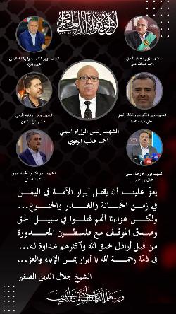 الشيخ جلال الدين الصغير يعزي باستشهاد القادة في اليمن