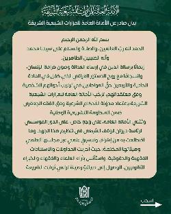 الامانة العامة للمزارات الشيعية في العراق تصدر بيانها بخصوص مدونة الاحكام الشرعية في مسائل الاحوال الشخصية على وفق المذهب الشيعي الجعفري