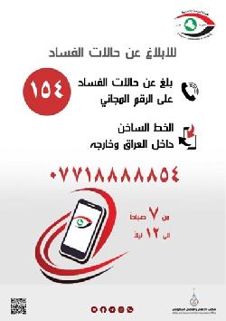 النزاهة تمدد ساعات استقبال بلاغات الفساد عبر الرقم المجاني 154