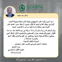 *عضو المكتب السياسي للمجلس الاعلى عمار الشيخ: قصف الإعلام الإيراني يكشف عجز الكيان الصهيوني أمام إرادة الشعوب الحرة*