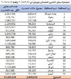 المفوضية: عدد المسجلين الكلي بعد التحديث بلغ 21.223.319 ناخبا