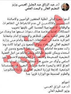 التعليم العالي تحذر من منشورات مزورة منسوبة لوزيرها