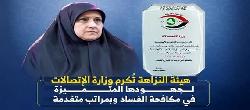 هيئة النزاهة تكرم وزيرة الاتصالات وفريقها الوزاري لجهودها المتميزة في مكافحة الفساد وبمراتب متقدمة
