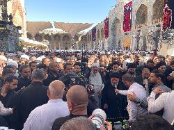 توافد المعزين إلى جامع الطوسي استعداداً لبدء مراسم تشييع عقيلة سماحة السيد السيستاني (دام ظله)