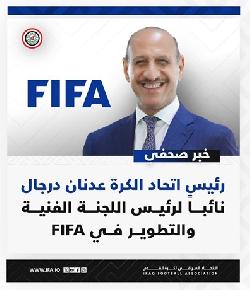رئيس اتحاد الكرة عدنان درجال نائباً لرئيس اللجنة الفنية والتطوير في FIFA