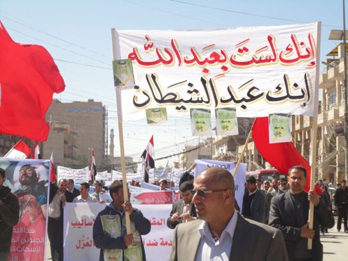 ونقل مراسل موقع نون ان التظاهرة التي دعت لها جميع الاطراف الدينية والرسمية والاحزاب والكيانات السياسية تمثل جماهير كربلاء المقدسة الرافضين للاعتداء الوحشي الذي يتعرض له اخوانهم في البحرين.