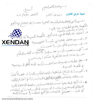 قام احد المواقع التابعة الى دولة القانون بتزوير الوثيقة التي وقعها نوري المالكي مع رئيس اقليم كوردستان مسعود البرزاني والتي بموجبها تم تشكيل الحكومة وسميت فيما بعد باتفاقية اربيل الاولى عام 2010 في محاولة منهم لتخليص المالكي من الورطة التي وقع فيها .