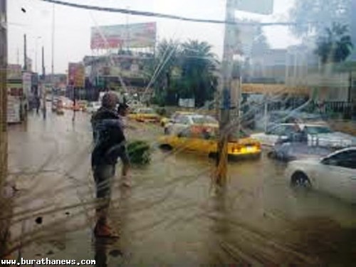 فيضانات في الشارع والحكومة تكول ماكو فساد بس ضل المطر يفوت في كل البيوت