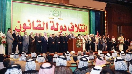 وقال النائب جواد الحسناوي، لوكالة كل العراق [أين] ان "الاحتفالية المركزية التي اقيمت أمس الأحد هي في نفس القاعة التي تم الاعلان فيها عن تأسيس ائتلاف دولة القانون، وكانت اللوحة التي وضعت خلف المنصة التي القى منها رئيس الوزراء كلمته، والمكتوب عليها أحدى الآيات القرانية، استخدمت فيها ذات الالوان التي رسمت بها لوحة الاعلان عن دولة القانون".
