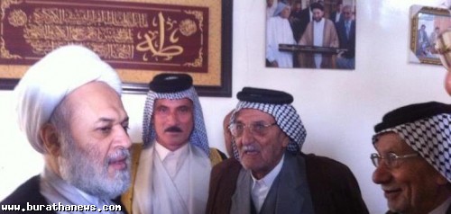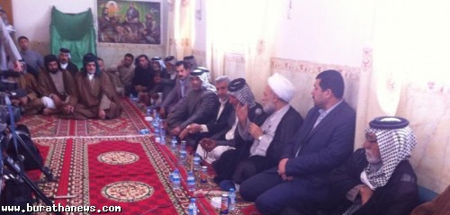 بعد ذلك إنتقل ركب سماحته الى منطقة عشيرة البزون حيث أستقبل هناك إستقبالا حافلا وحارا من أبناء هذه العشيرة المضحية، وحل سماحته في مضيف الشيخ قحطان البزوني الذي رحب هو ووجهاء العشيرة بمقدم سماحة الشيخ الصغير مشيدين بدوره الكبير والفاعل في إضاءة جوانب مهمة من تصوراتهم حول دورهم في الإستعداد للظهور المبارك للأمام القائم عجل الله فرجه الشريف.