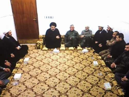 بحث زعيم التيار الصدري مقتدى الصدر، مع قادة الحشد الشعبي، الملف الأمني والسياسي وتحرير الأراضي المتبقية من دنس عصابات داعش الإرهابية.