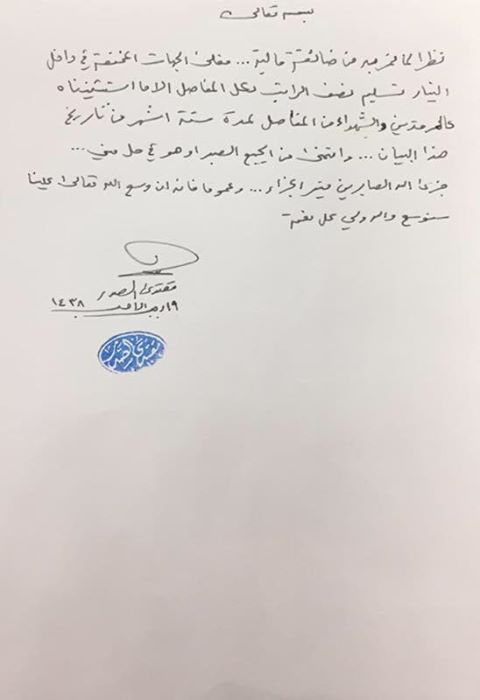 وأضاف الصدر "أتمنى من الجميع الصبر أو هو في حل مني، جزى الله الصابرين خر الجزاء، وعموما فأنه أن وسع الله تعالي علينا سنوسع والله ولي كل نعمة".