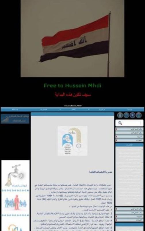 ووضع المخترق في أعلى الموقع العلم العراقي وكتب تحته باللغة الإنجليزية عبارة "Hussein Mhdi Free to" وتعني بالعربية (الحرية لحسين مهدي)، وهو الشخص الذي أعلن جهاز الأمن الوطني يوم أمس الخميس عن اعتقاله بسبب قيامه باختراق الموقع الإلكتروني للجهاز.
