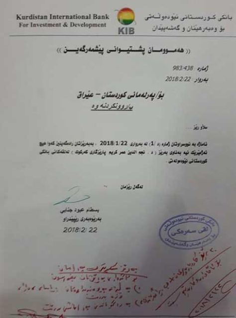 واضافت "وبعد متابعة دقيقة من بعض نواب اللجنة المالية في برلمان كردستان تبين ان المبلغ مودع في بنك كوردستان في أربيل "، مشيرة الى ان "المضحك هو ان رئيس برلمان كردستان خاطب في الـ22 من شباط الحالي، البنك أعلاه، الا ان الاخير وبسرعة البرق رد في نفس اليوم البرلمان بالقول انه لايوجد عندهم حساب باسم نجم الدين، حيث جاء الرد يوم الخميس والذي كان نصف دوام".