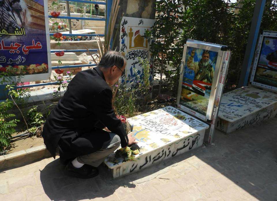 تداولت مواقع التواصل الاجتماعي صورا للسفير الياباني بالعراق وهو يزور مقابر شهداء الحشد الشعبي ويضع اكليل ورود على قبر قناص الدواعش الشهيد ابو تحسين الصالحي.