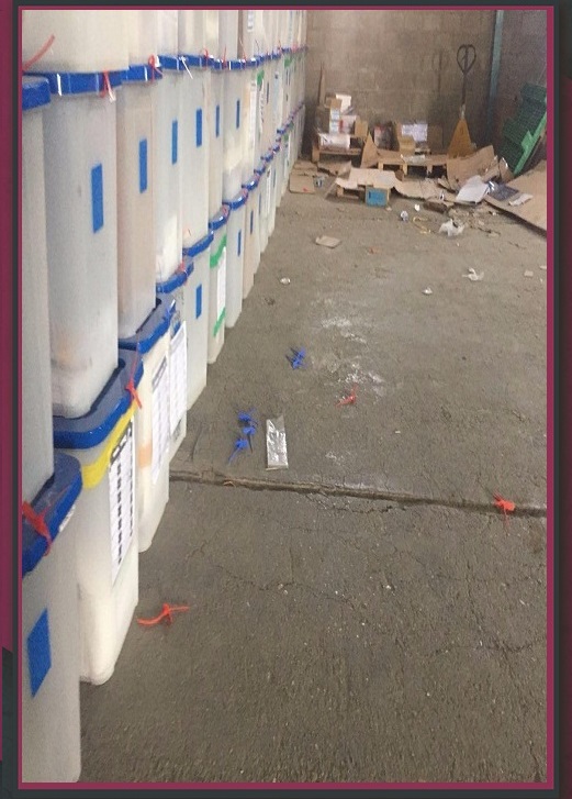 وتبين الصور ان بعض الصناديق تم فتحها ومن ثم إعادة غلقها بأقفال جديدة، داخل المخازن الخاصة بصناديق الاقتراع في كركوك.