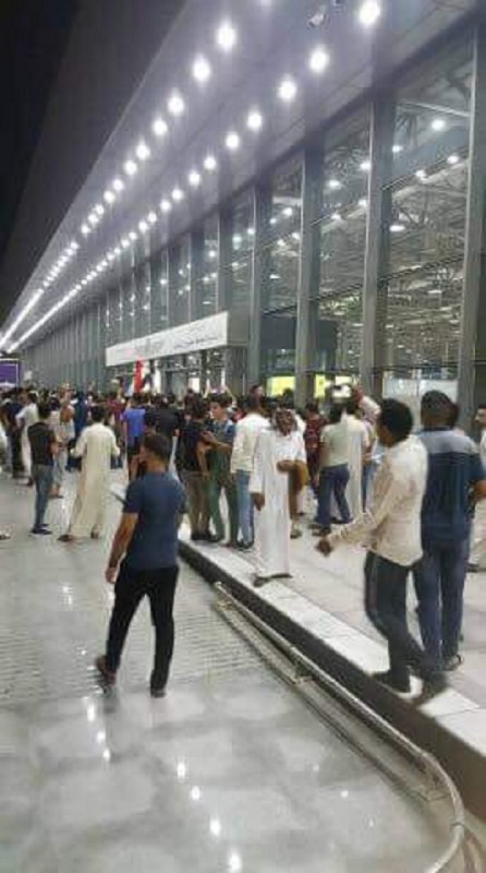 فيما قال الزميل السيد احمد مهدي الياسري ان المتظاهرين اقتحموا نقاط التفتيش الاولى والثانية واقتحمو المطار بشكل كامل والان داخل الصالات ومدارج الطائرات