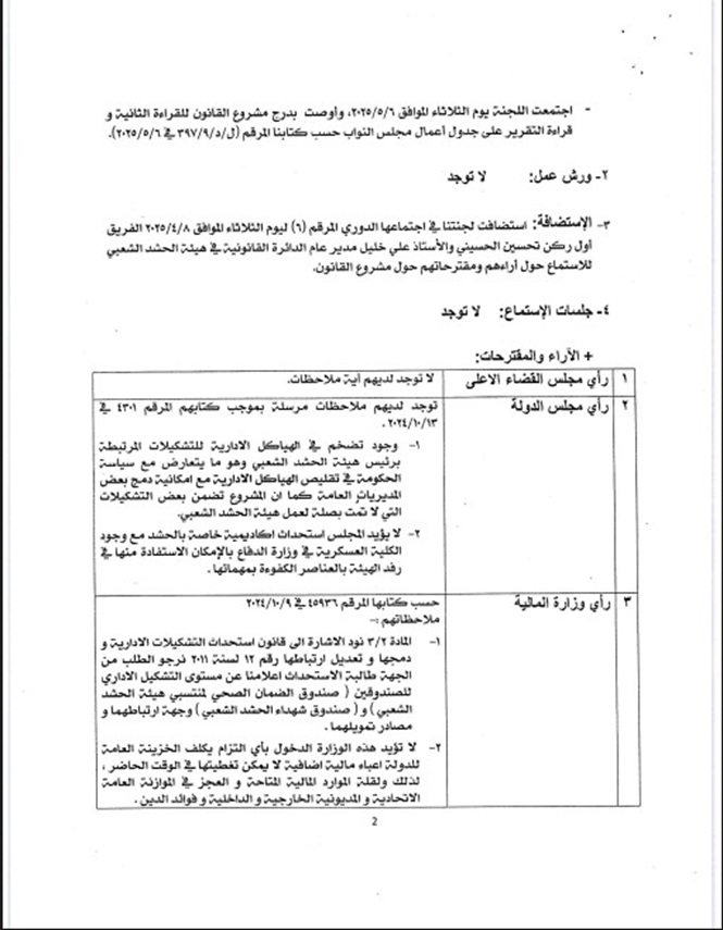 تنشر وكالة انباء براثا اليوم الأربعاء، (16 تموز 2025)، نص مشروع قانون هيئة الحشد الشعبي.