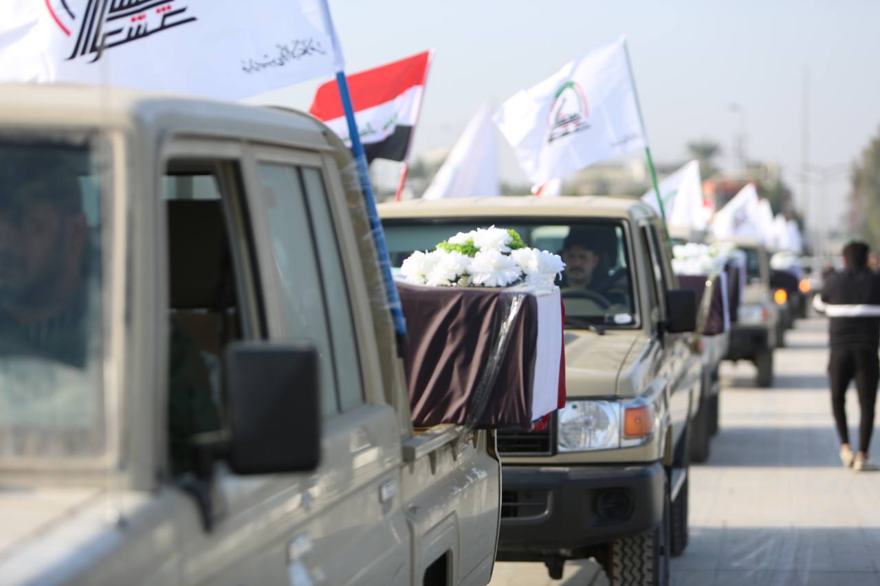 احتضنت العاصمة بغداد، صباح اليوم الجمعة، مسيرة التشييع الرمزي لاستذكار شهداء من الحشد الشعبي والذين ارتقوا في قضاء القائم غربي محافظة الأنبار، جرّاء قصف أمريكي العام 2019، حيث ذكرت الوكالة الرسمية، أن "المسيرة شهدت مشاركة جميع تشكيلات هيئة الحشد الشعبي والقيادات الأمنية والرموز الدينية، إلى جانب جمع غفير من النخب المجتمعية"، لافتاً الى أن "المسيرة تضمنت حمل النعوش الرمزية على متن المركبات، حيث تم الانطلاق من موقع نصب الشهيد، وصولًا إلى ساحة التحرير".