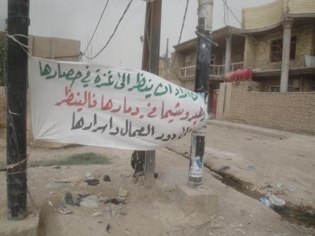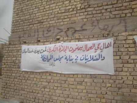 والى جانب ما تم ذكره كانت اللافتات تشير الى عدم اكتراث اعضاء مجلس المحافظة بحياة مواطني هذا الحي السكني وحصول حالة ندم لقيامهم بانتخاب اعضاء هذا المجلس.