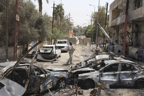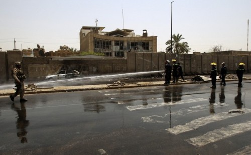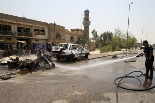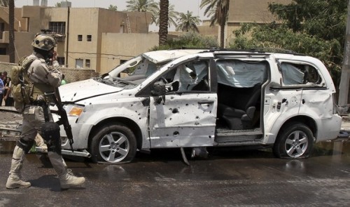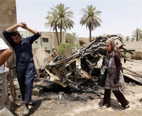 أعلن مصدر في وزارة الداخلية العراقية استشهاد 26 شخصا على الأقل أغلبهم من النساء وإصابة نحو 52 آخرين بجروح الأحد في انفجار سيارتين مفخختين استهدفتا ساحة رئيسية في حي المنصور غربي العاصمة بغداد. وأكدت قيادة عمليات بغداد أن الهجومين نفذا من قبل انتحاريين كانا يقودان السيارتين المفخختين. واستهدف التفجيران دوائر الجنسية والجوازات والمرور والبنك التجاري. وأوضح المصدر العراقي أن الانفجارين وقعا في الوقت ذاته قرابة الساعة 11:30 ظهرا.من جهته، أكد اللواء قاسم عطا الناطق باسم عمليات بغداد الحصيلة، مشيرا إلى وجود عناصر من الشرطة بين الشهداء. وقال عطا إن أضرارا جسيمة لحقت بالمصرف التجاري.