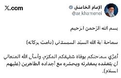سماحة السيد القائد الخامنائي يعزي بالمرجع الديني الاعلى السيد السيستاني بوفاة شقيقه