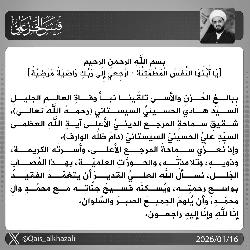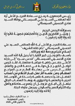 تحالف العزم يعزي المرجع الديني الأعلى السيد السيستاني بوفاة شقيقه