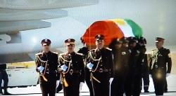 بالصور.. لف جثمان طالباني بعلم اقليم كردستان بدل العلم العراقي!!