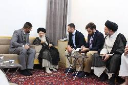 المرجع الحكيم يؤكد خلال لقائه وفدا دوليا اهمية حل المشاكل بالحوار