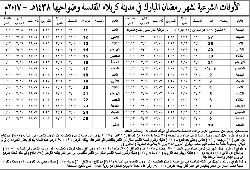 إمساكيات شهر رمضان المبارك لعام 1438 هـ (2017 م)