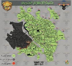 خارطة عسكرية للموصل توضح المناطق المحررة والمدنسة بداعش الارهابي