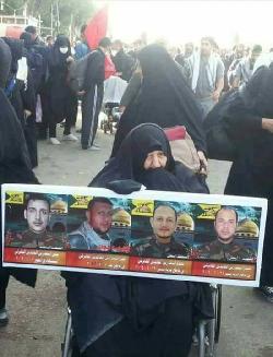 متأسية بأم البنين "ع" . امراة تحمل صور أبنائها الاربعة الشهداء