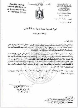 بالوثيقة.. التربية توبخ مدير عام تربية الأنبار والقيادي في تقدم نافع حسين