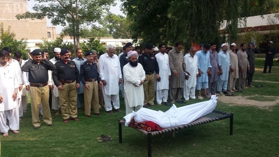 واستشهد الشرطي بعد اطلاق النار على رأسه مباشرة اثناء قيامه بحراسة حسينية في عملية ارهابية لارهابيين اثنيين يستقلان دراجة نارية .