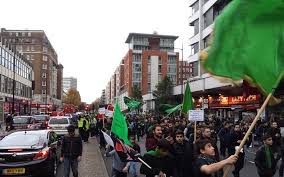 الشرطة البريطانية "متروبوليتان" : المسيرة مرخصة ل عشرة آلاف شخص لكنها عندما إخترقت شارع أكسفورد ستريت تضاعفت الى خمسة أضعاف العدد المتوقع وعلى مشارف رئاسة الوزراء سجلت الكامرات الرقمية عدد يفوق الخمسين الف.