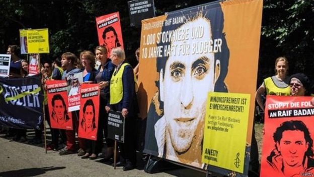 وكان بدوي أوقف في قبل أربع سنوات، ويقضي عقوبة بالسجن لعشر سنوات، وقد تعرض لخمسين جلدة من أصل 1000 جلدة، ما أدى إلى غضب منظمات حقوقية وادانات دولية عدة.