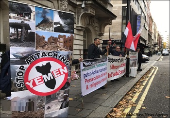 نظّم ناشطون إعتصاما الأربعاء (16 نوفمبر 2016) أمام مقر سفارة آل سعود في العاصمة البريطانية لندن, احتجاجا على السياسات السعودية العدوانية في المنطقة.