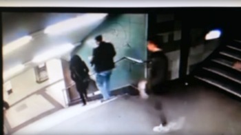 رصدت كاميرات المراقبة في إحدى محطات المترو في ضاحية "نيو كولن" بالعاصمة الألمانية برلين، لحظة قيام مجهول بركل فتاة محجبة على ظهرها ورميها من أعلى الدرج، دون ذكر هوية الفتاة الضحية.