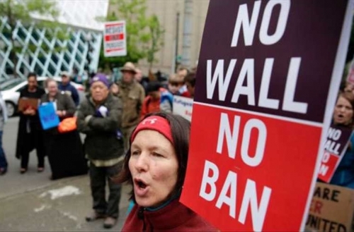 - في يناير/كانون الثاني، وقع ترامب على قرار الحظر كما علق دخول جميع طالبي اللجوء، وقد أدى هذا القرار إلى موجة من الاحتجاجات والتحديات القانونية في الكثير من الولايات الأمريكية.