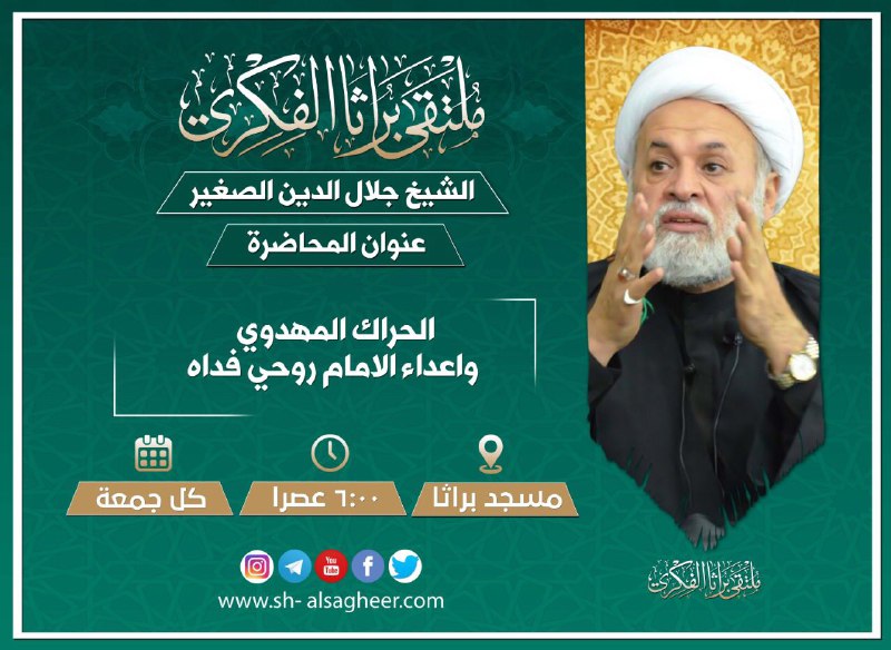 في منتدى براثا الفكري ليوم غد محاظرة لسماحة الشيخ جلال الدين الصغير بعنوان الحراك المهدوي واعداء الامام روحي فداه