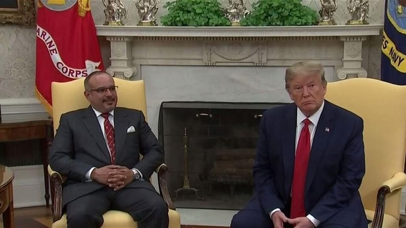 وخلال اللقاء توجه ترامب الى ضيفه بالقول: "جيد، ولي عهد البحرين يملك 700 بليون دولار والسنة المقبلة 718 بليون والسنة التي بعدها 738 بليون دولار وهذا مال كثير والبحرين تملك الكثير من المال".