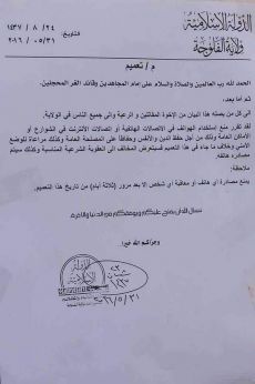 عصابات داعش الإرهابية تمنع استعمال الهواتف والانترنت في الفلوجة وتفرض عقوبة على كل من يخالف ذلك .