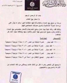 رسالة من الداعش على شكل مرسوم يحدد أسعار السبايا من النساء