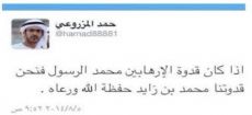 العقيد الإماراتي حمد المزروعي: قدوتي محمد بن زايد وليس محمد رسول الله(ص)